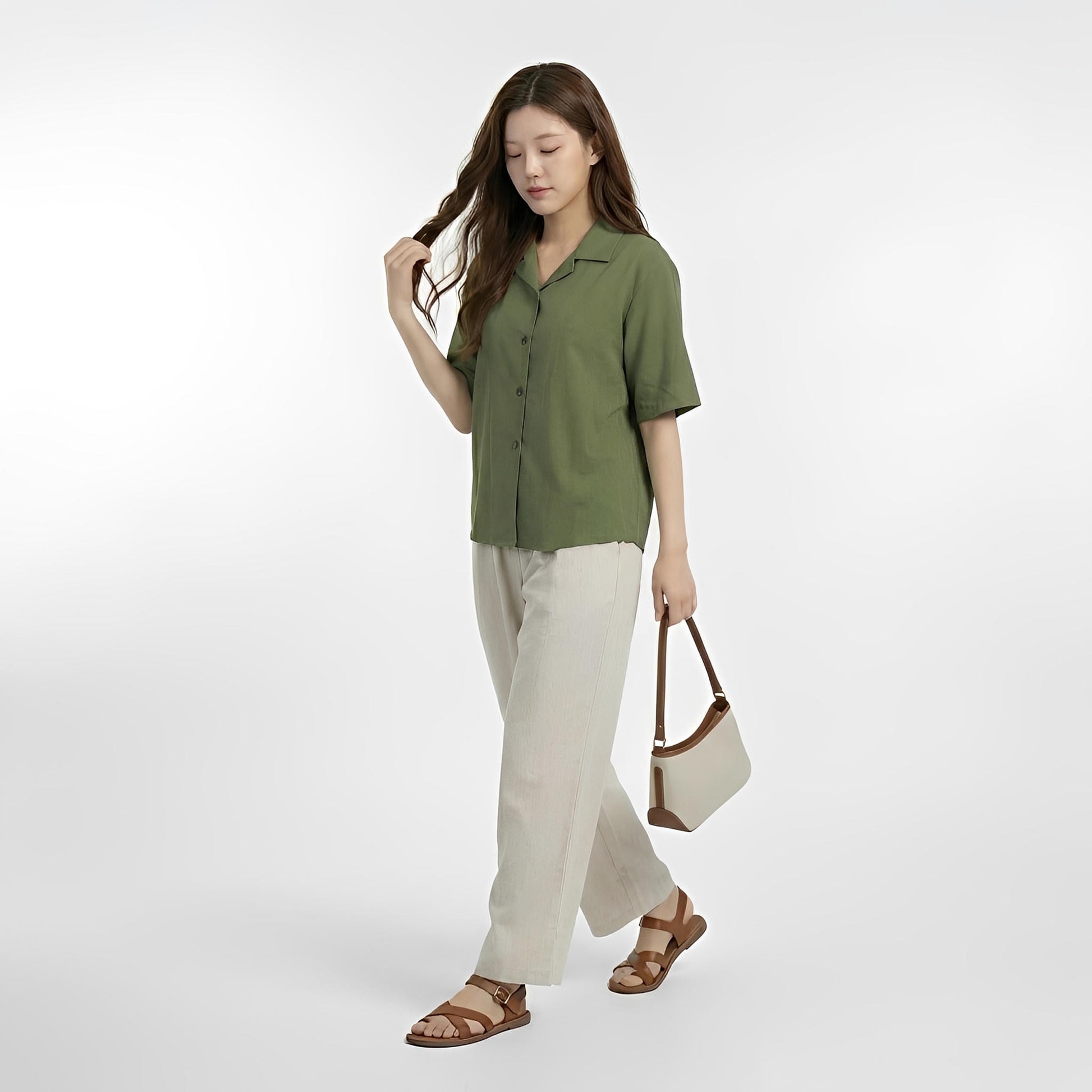 • Smart Casual: แมตช์กับกางเกงผ้าเนื้อบางโทนเอิร์ธโทนสำหรับวันทำงานที่ต้องการความคล่องตัว