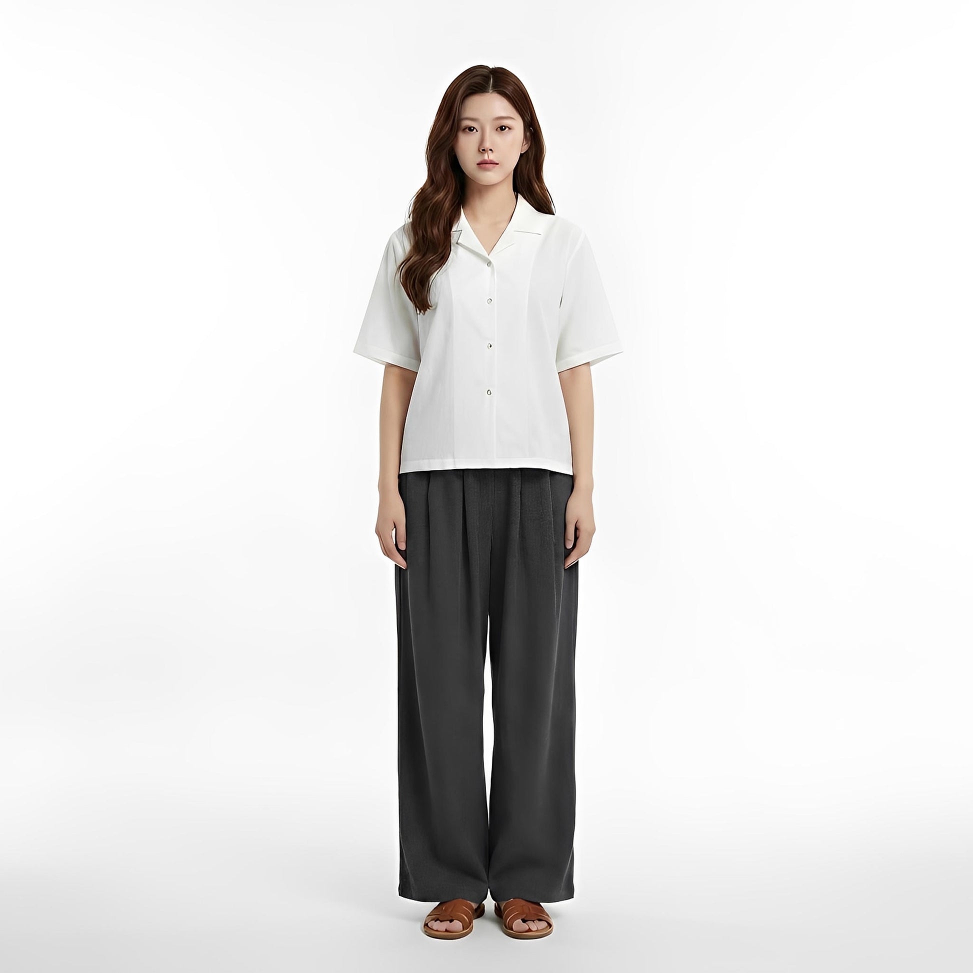 • Clean Minimal Design: คอปกดีไซน์มินิมัลที่ดูสุภาพแต่ไม่ทางการเกินไป พร้อมทรงไหล่ตก (Drop Shoulder) ช่วยให้ดูซอฟต์และสวมใส่สบายไม่รัดตัว