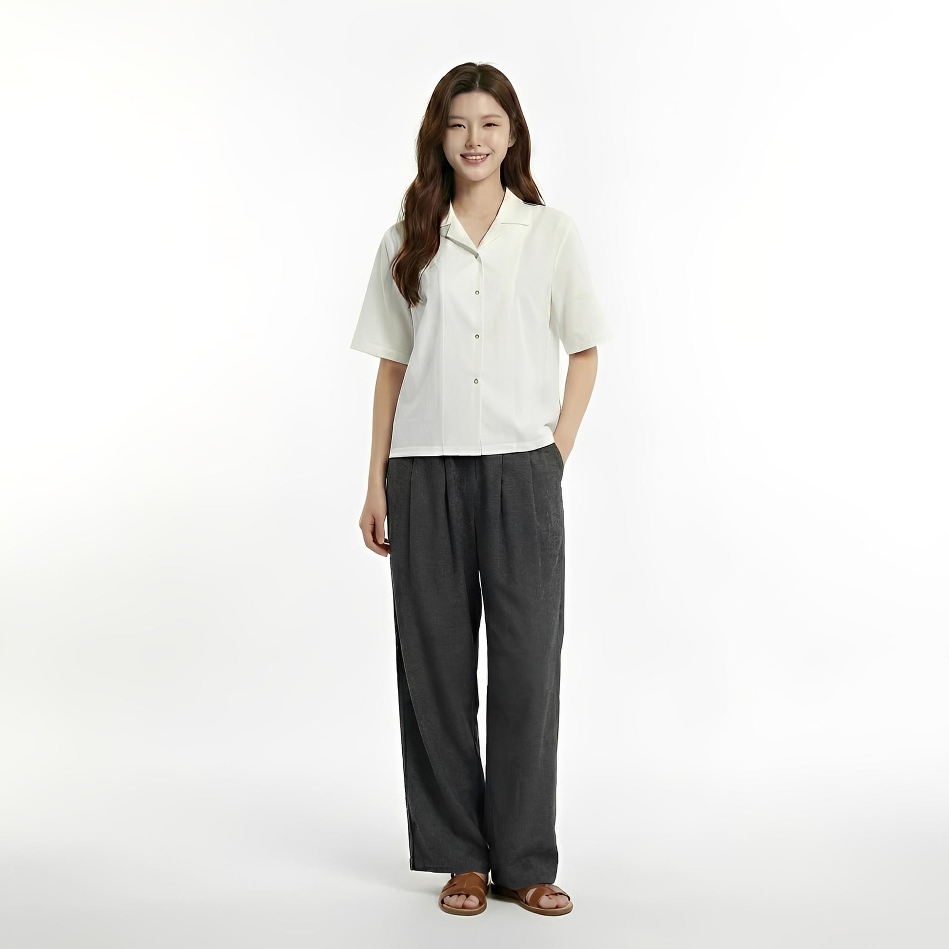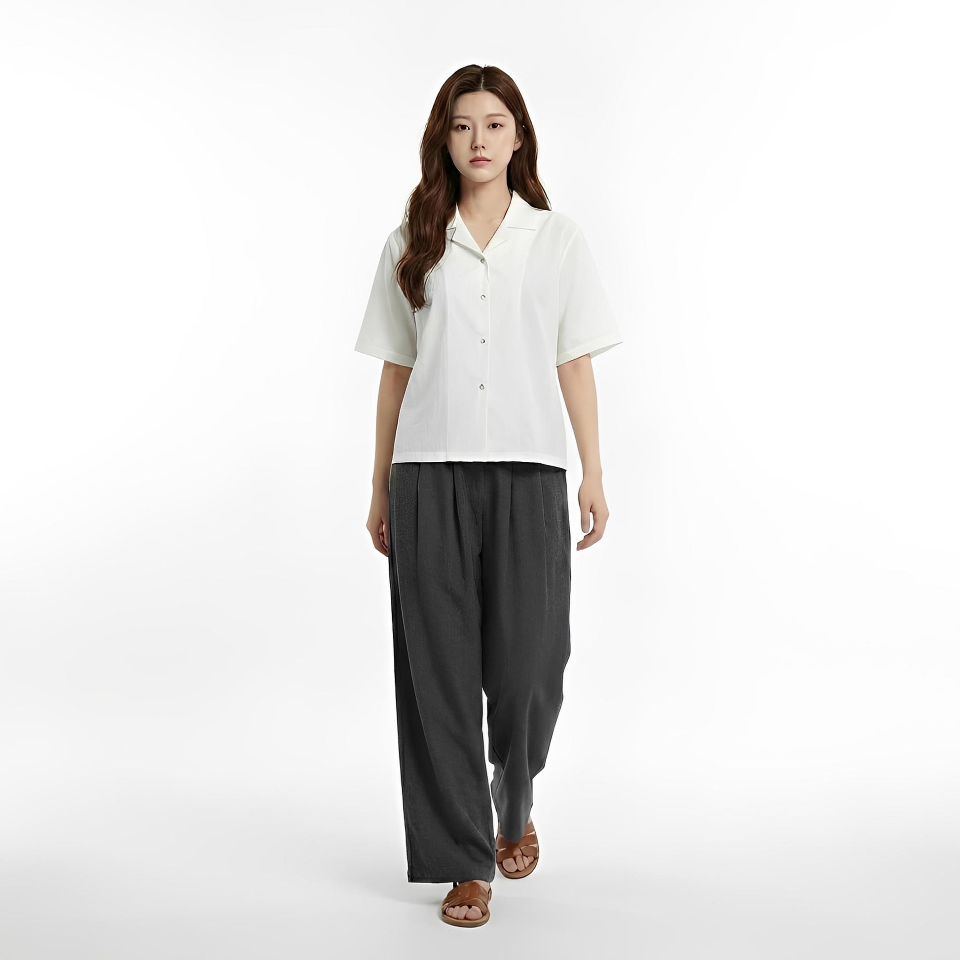 B56_ผ้าวอชเชอร์ทรงมินิมัล ดีไซน์คอปกสุดคลีน