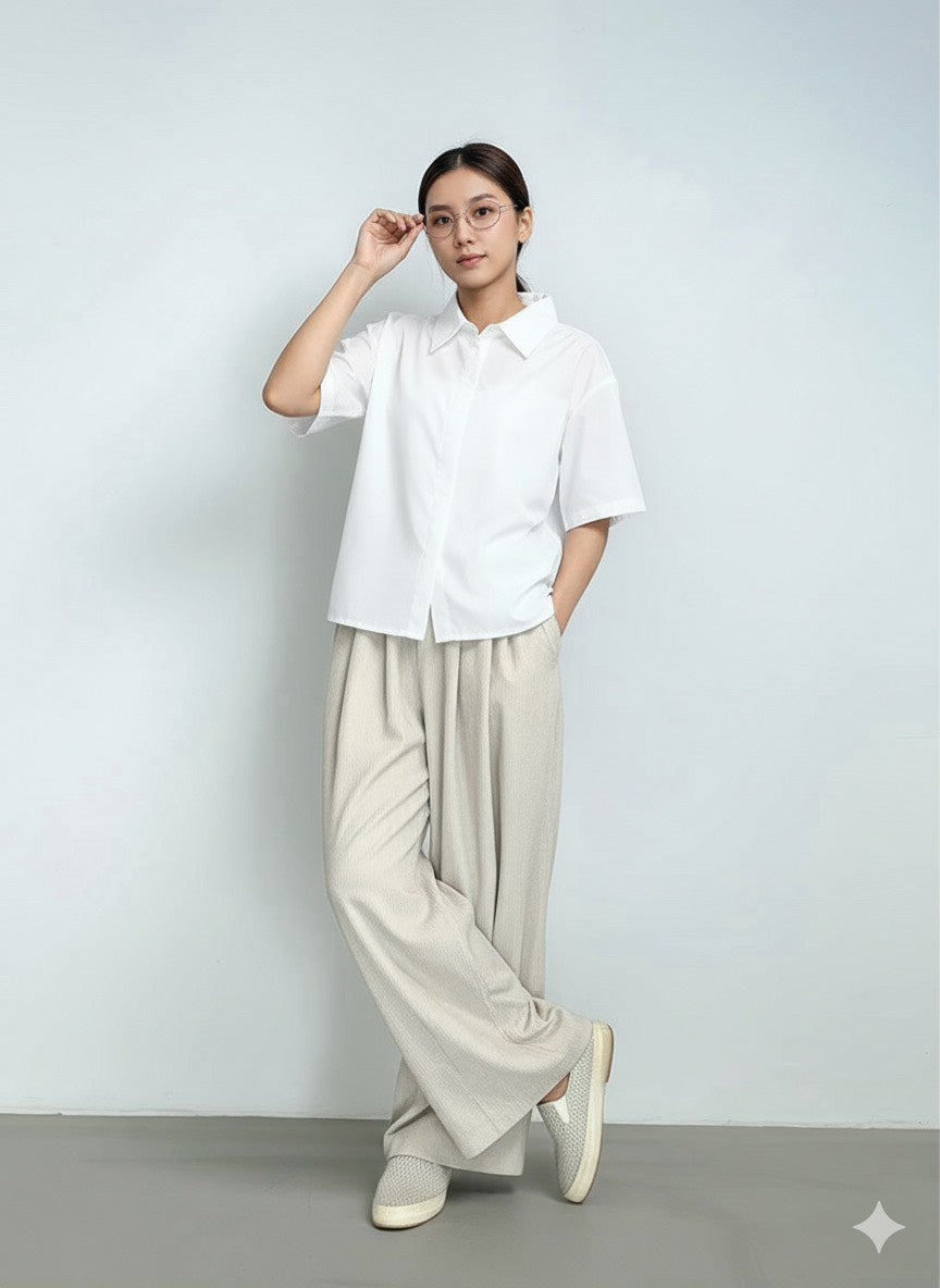 • Daily Clean: ใส่กับกางเกงขาสั้นสีพื้นในวันสบายๆ ได้ลุคแคชชวลที่ยังดูมีสไตล์