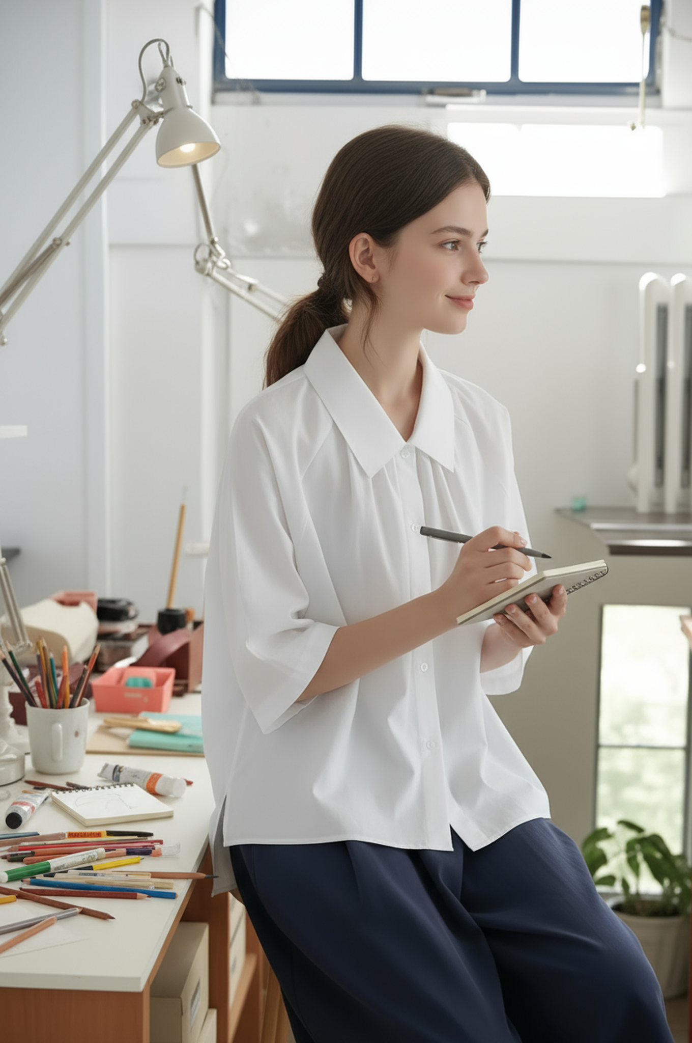 • ลุคมินิมัลสะอาดตา: จับคู่กับกางเกงผ้าฝ้ายสีเอิร์ธโทนหรือผ้าลินิน