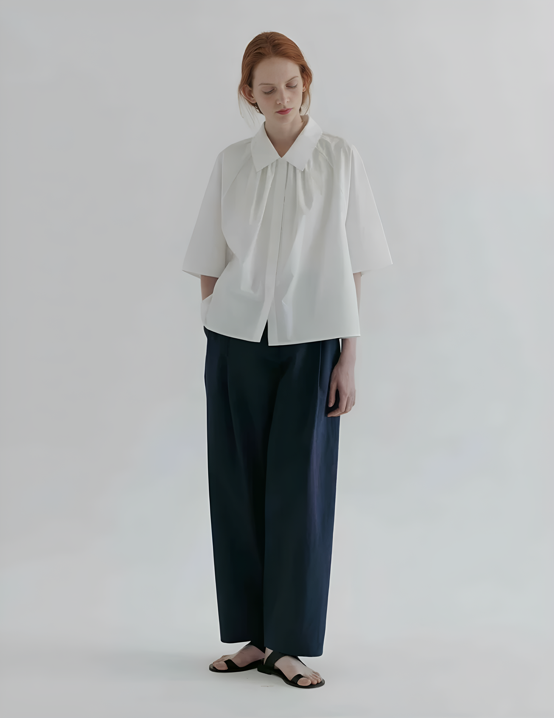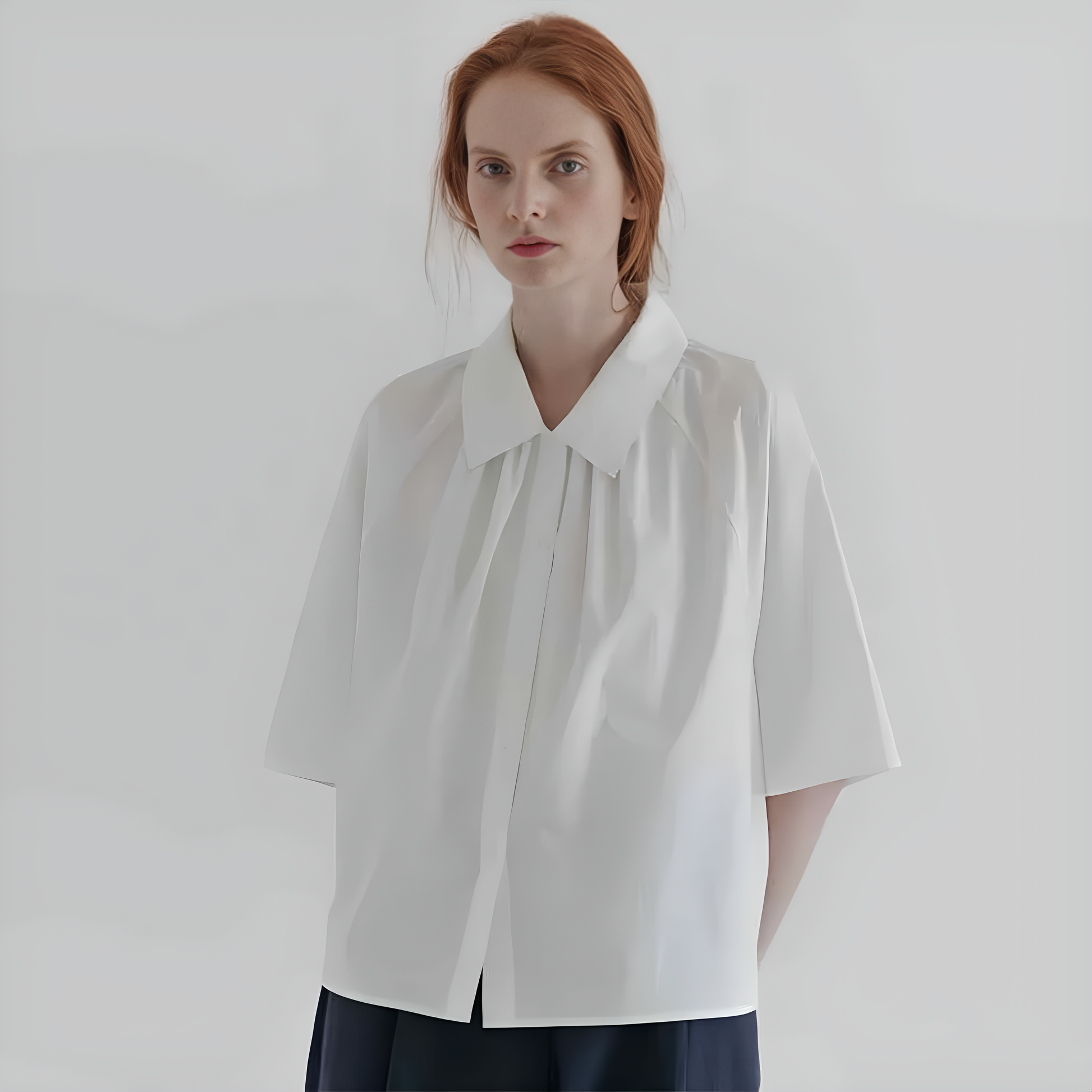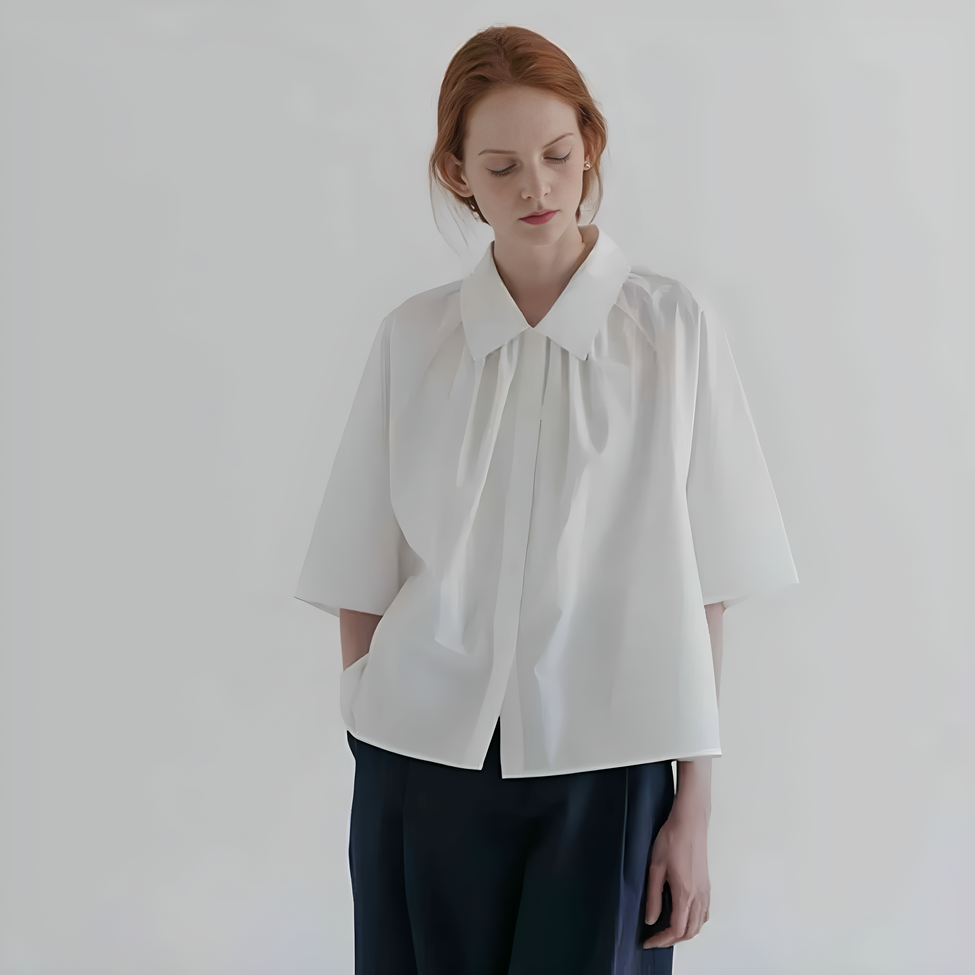 เสื้อเชิ้ตคอปกจีบรอบคอ “Soft Gather” ดีไซน์เรียบแต่แฝงด้วยความอ่อนโยนของจีบรอบคอ