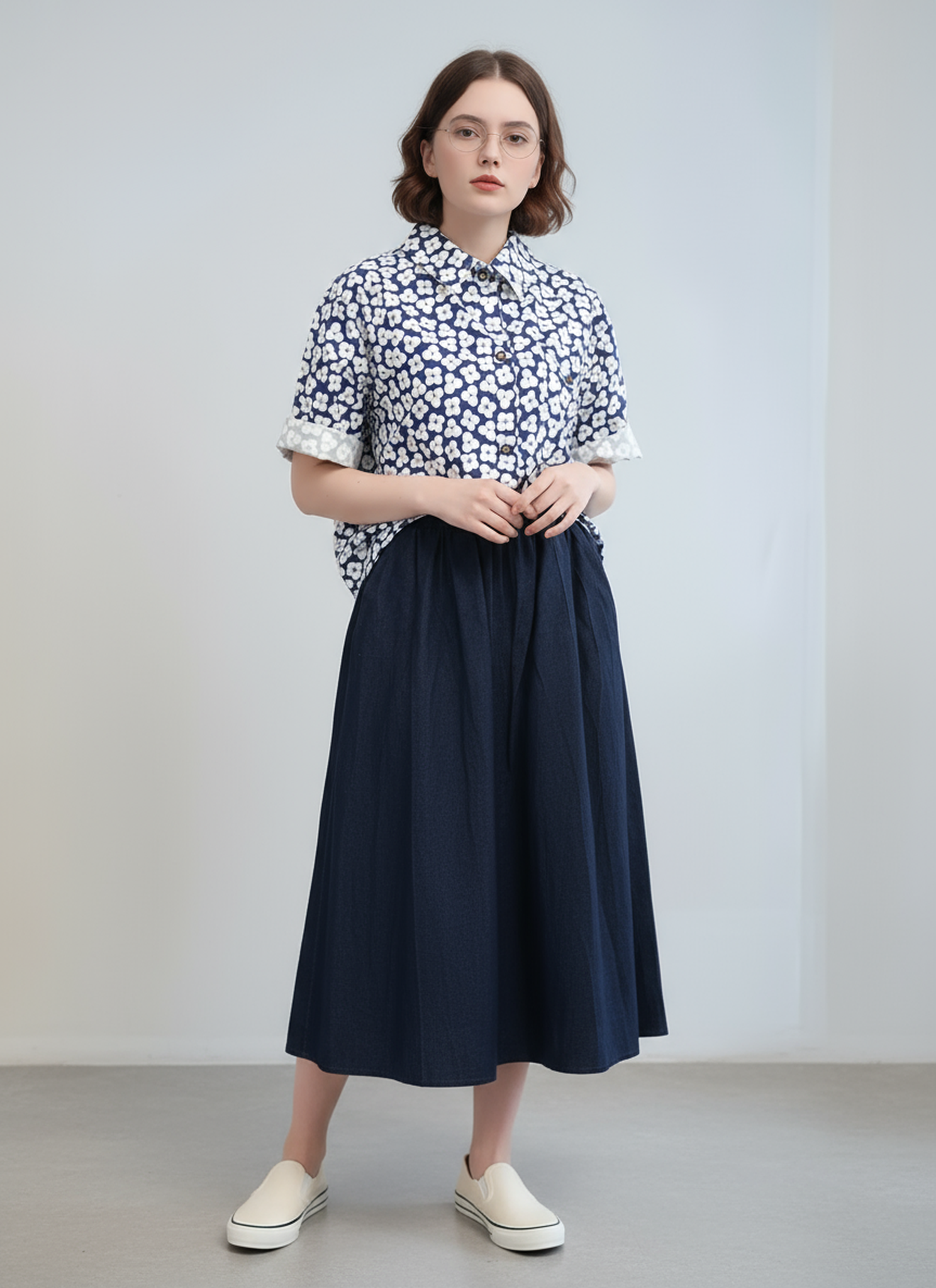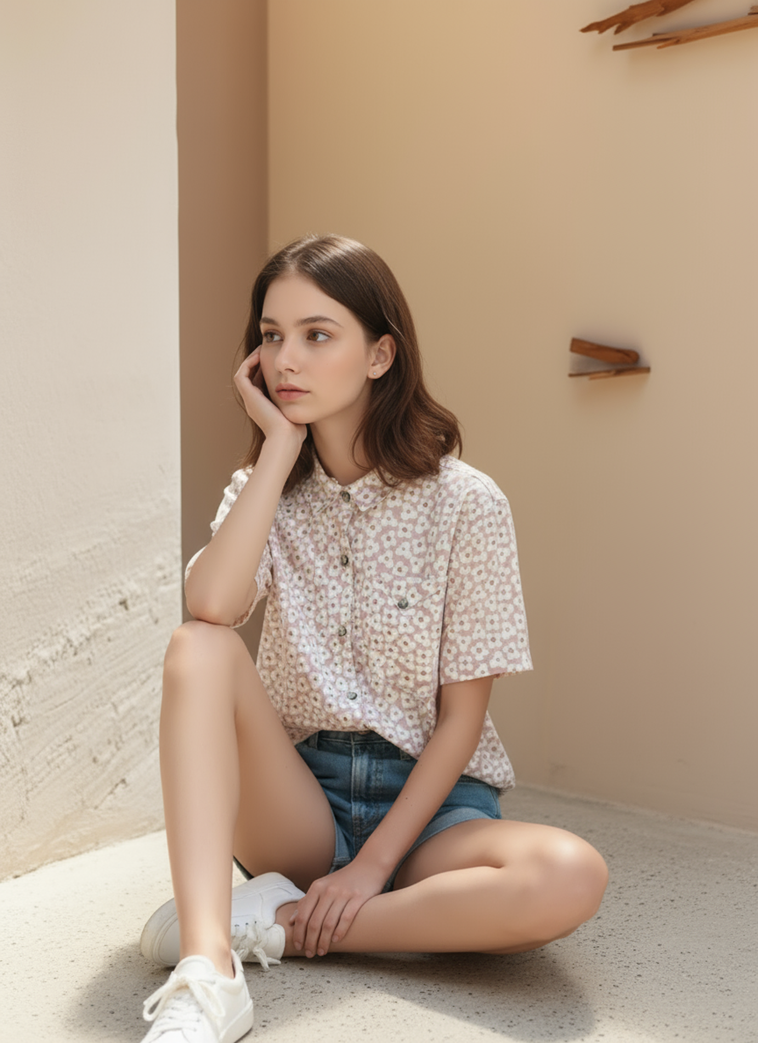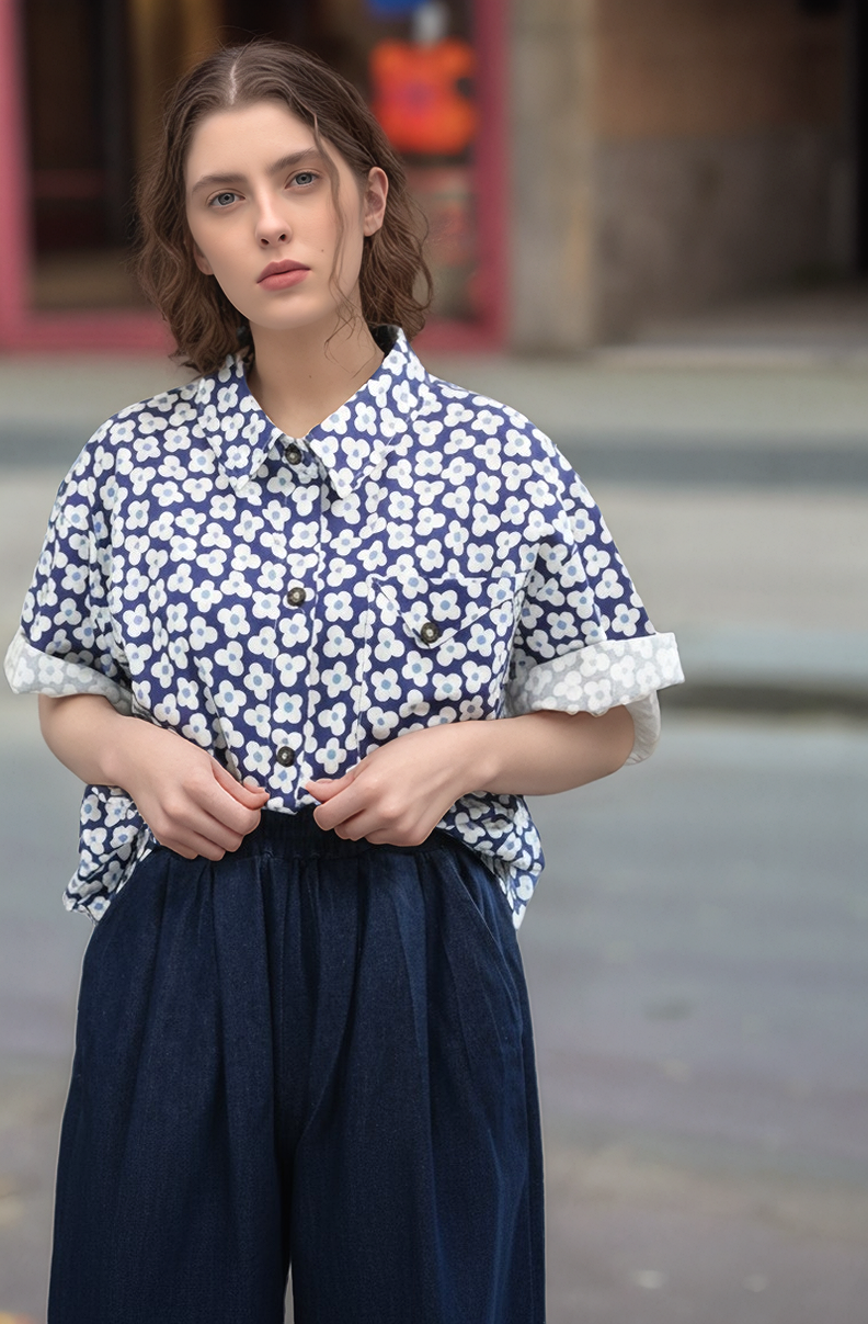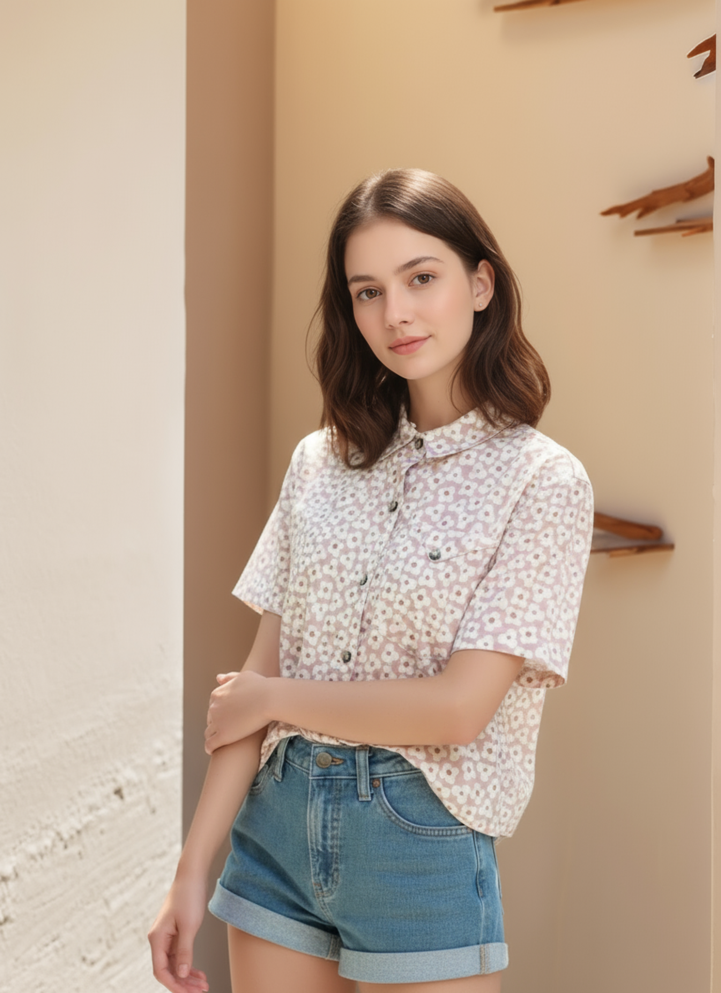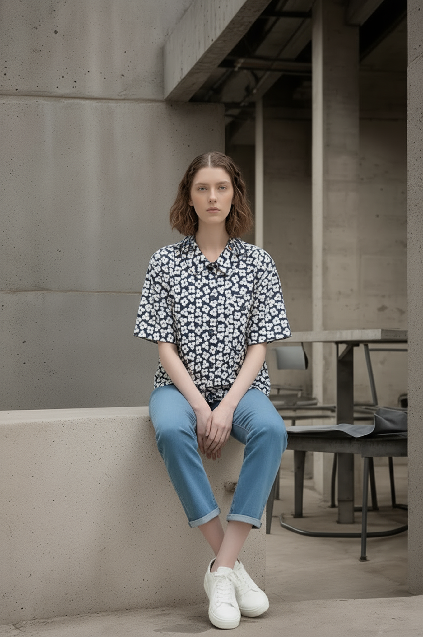 เสื้อเชิ้ตคอปกเล็กลายดอก “Twill Garden” ผสานความนุ่มสบายของผ้าฝ้ายแท้กับเท็กซ์เจอร์ ทอแนวเฉียงแบบทวิล (Twill Weave) พิมพ์ลายดอกไม้เล็กให้ความรู้สึกวินเทจละมุนแต่ยังคงความมินิมัล