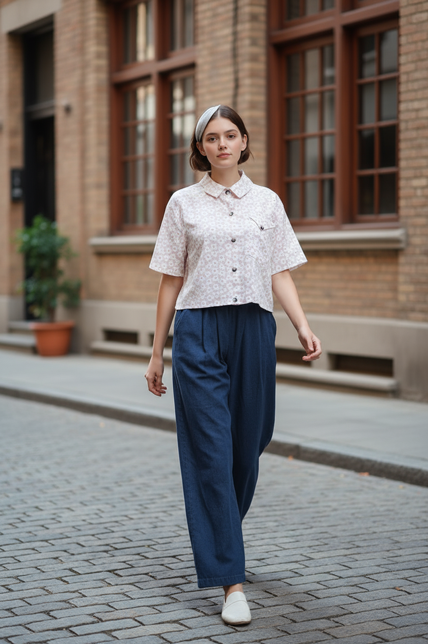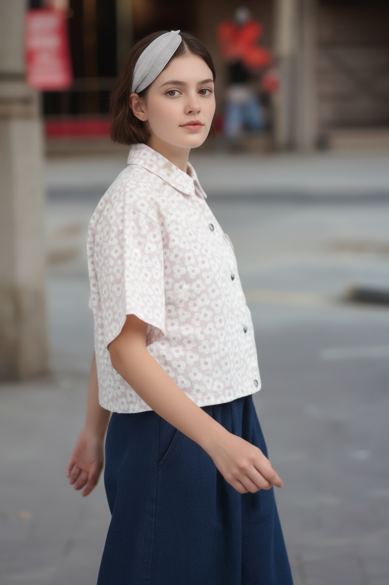 ทรงเสื้อออกแบบให้หลวมสบาย แต่ยังคงทรงเรียบสวยเมื่อสวมใส่ คอปกเล็กทรงมินิมัลและกระเป๋าแต่งฝา เพิ่มความเรียบเท่แต่ยังดูหวานนิด ๆ เหมาะกับทุกโอกาส — ตั้งแต่วันทำงาน คาเฟ่ ไปจนถึงเดินเล่นในเมืองอย่างมีสไตล์