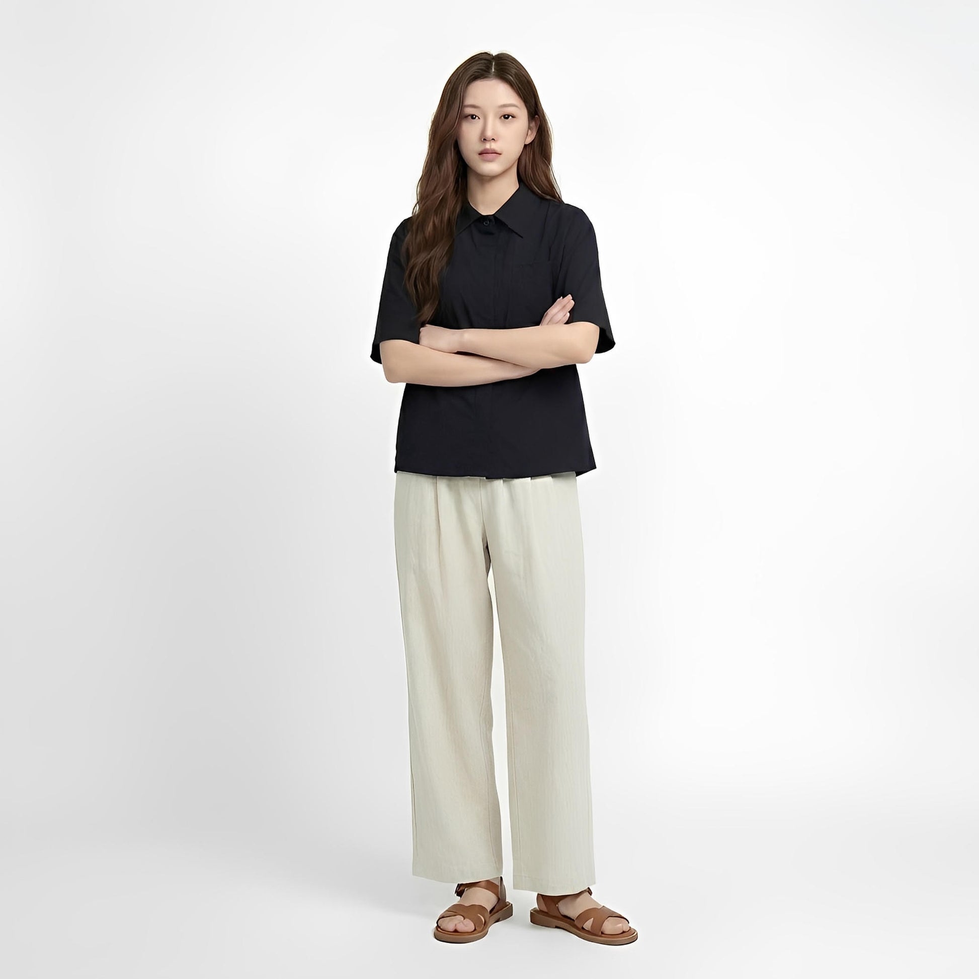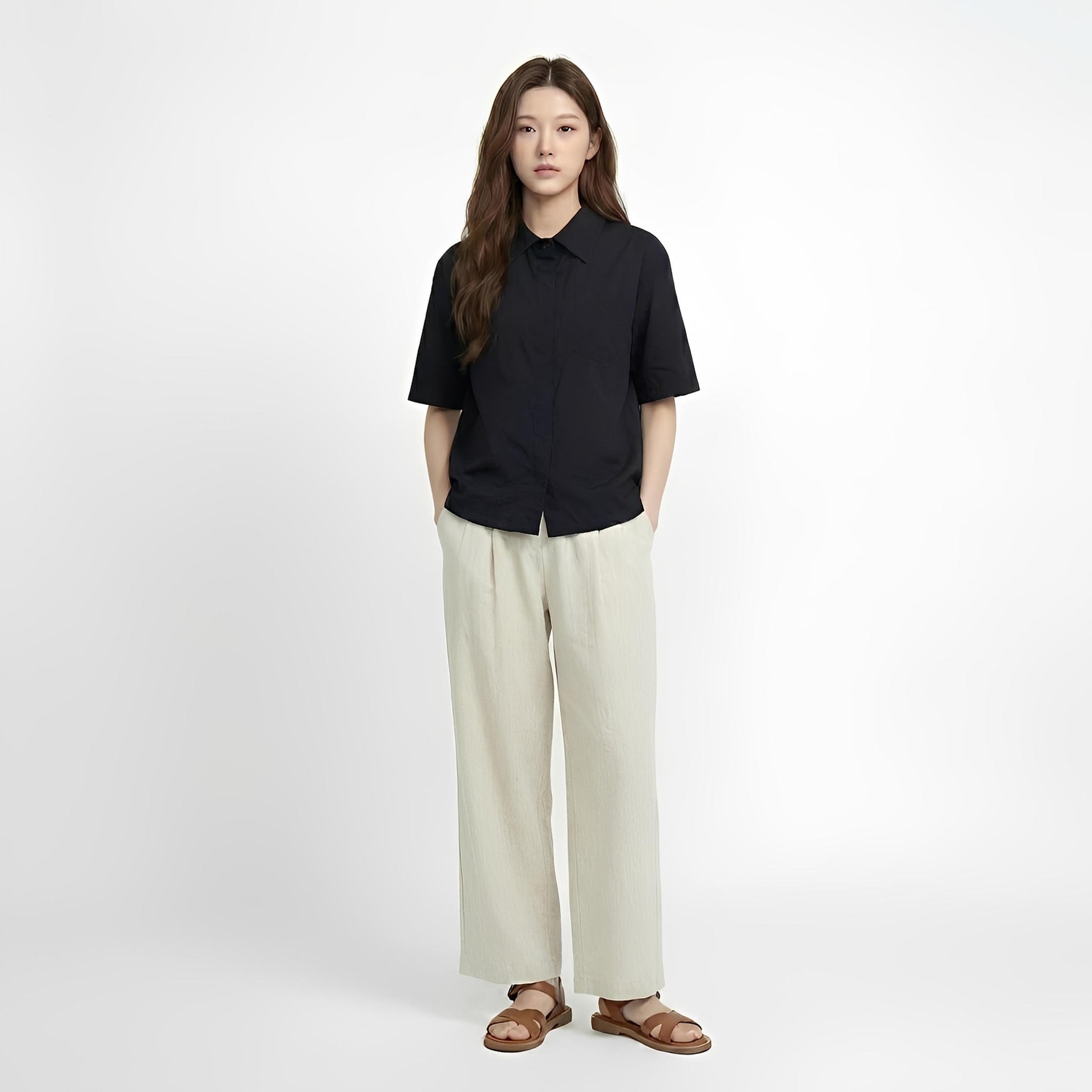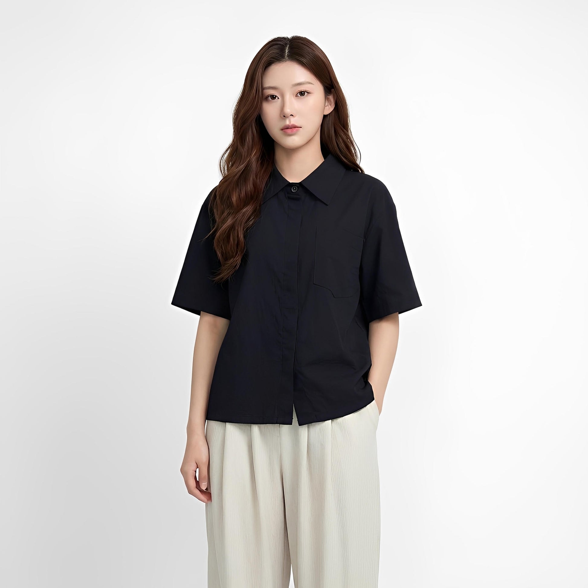 ยกระดับความเนี้ยบในลุคมินิมัลพรีเมียม ด้วยเสื้อเชิ้ตดีไซน์ "กระดุมซ่อน" (Hidden Button) ที่มอบความสะอาดตาและเรียบหรูเป็นพิเศษ ตัดเย็บจากผ้าวอชเชอร์เนื้อนุ่มลื่น สัมผัสเบาสบายทิ้งตัวสวย และไม่ยับง่าย เป็นไอเทมที่ตอบโจทย์ทั้งวันทำงานที่ต้องการความภูมิฐาน หรือวันพักผ่อนที่อยากดูดีแบบ Effortless Elegance